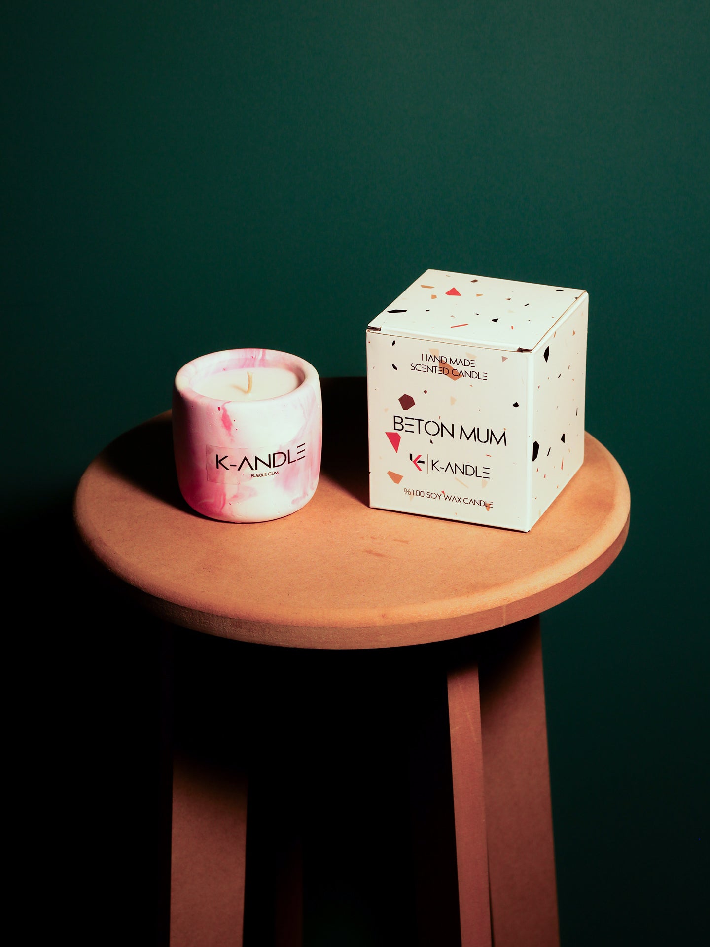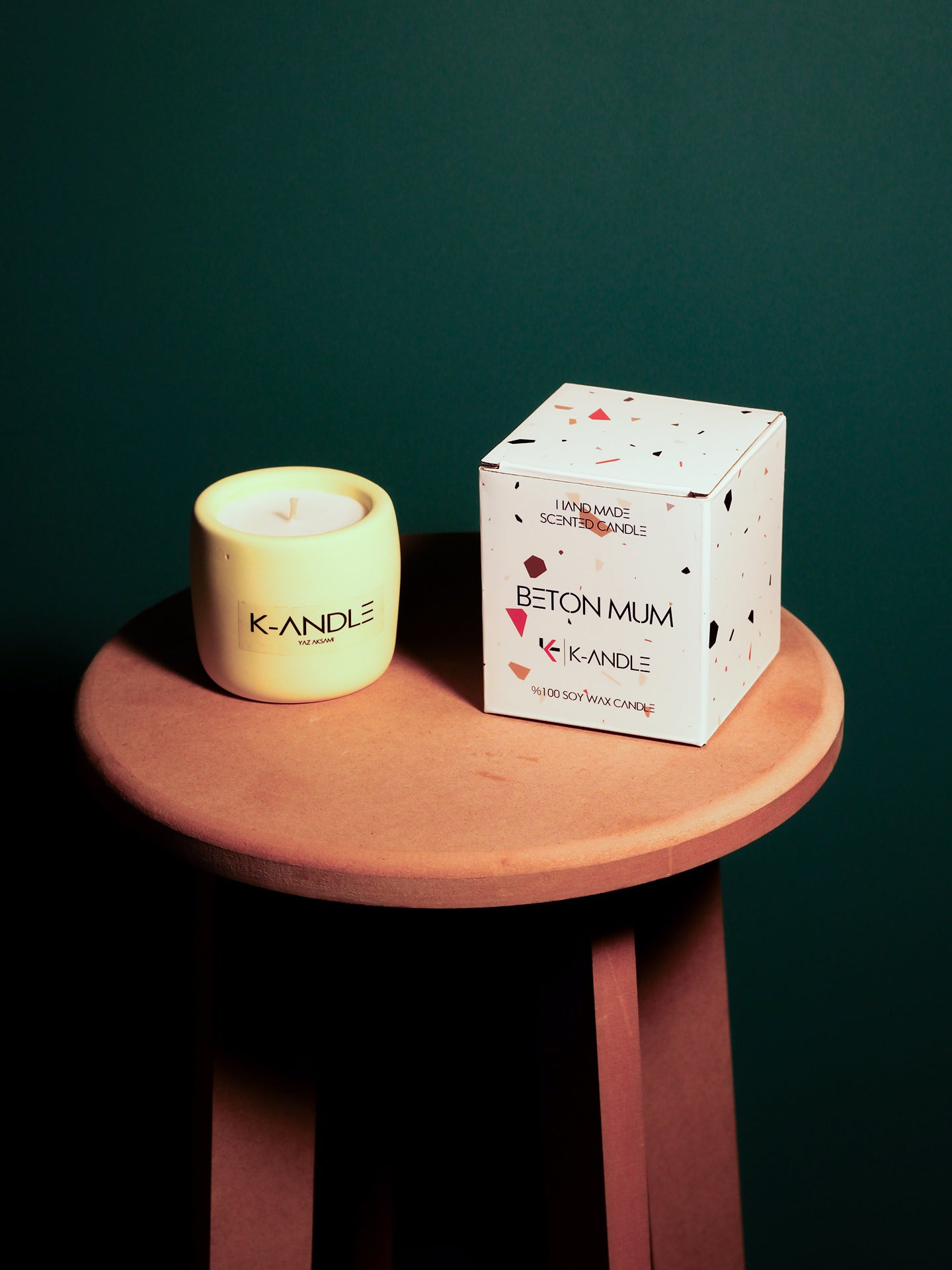 K-ANDLE mumları doğal soya mumu, kaliteli esanslar ve pamuk fitil ile el yapımı üretilir. Bazı dekoratif mum modellerinde parafin de kullanılır; bu sayede hem uzun ömürlü yanış hem de güçlü koku elde edilir.